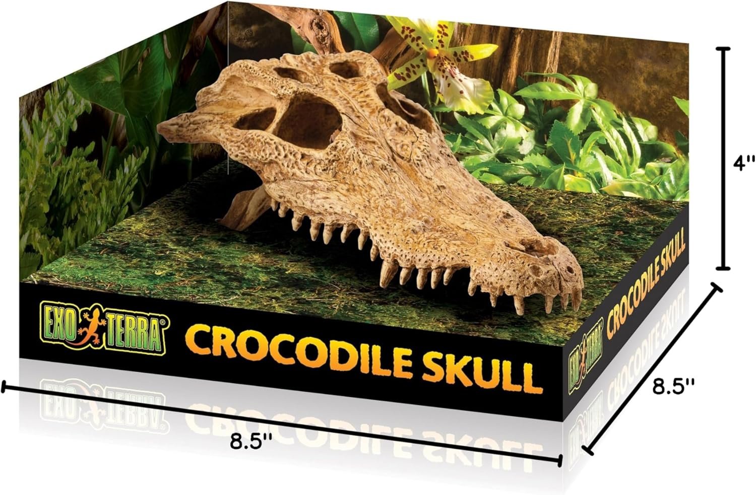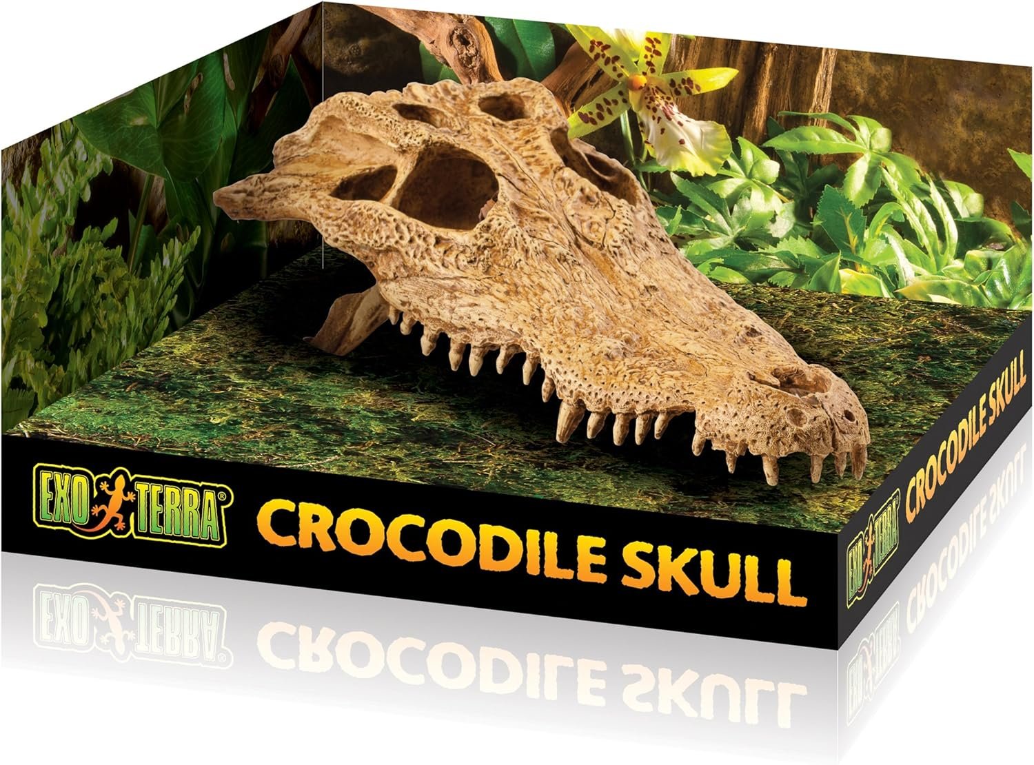 The Exo Terra Crocodile Skull Terrarium Décor from the Exo Terra Store offers reptiles and amphibians a secure, naturalistic hiding place that reduces stress and boosts well-being. Crafted from durable, non-toxic resin, it boasts multiple entrances for easy access and comfort in both desert and rainforest setups. Not only functional, this striking skull also enhances your terrarium’s aesthetic appeal, making it a must-have accessory for pet owners looking to enrich their pet's environment.