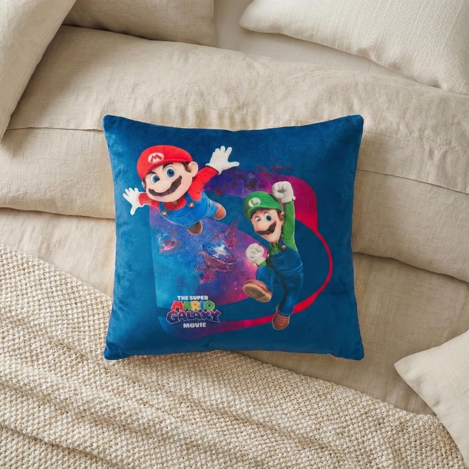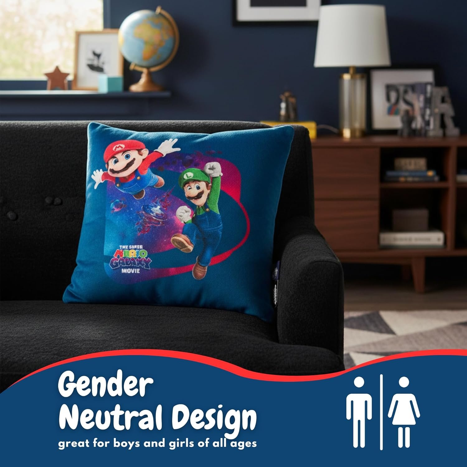 Add a burst of playful charm to your child’s space with the Franco Super Mario Galaxy Movie Kids Squishy Plush Throw Pillow. This officially licensed, 13-inch cushion features Mario, Luigi, and Princess Peach in vibrant galaxy-inspired artwork, crafted with velvety-soft, squishy polyester for cozy lounging. Easy to care for and perfect for kids ages 3 and up, it makes an ideal gift or stylish addition to bedrooms and game rooms. Embrace Super Mario’s magic with this must-have decorative pillow!