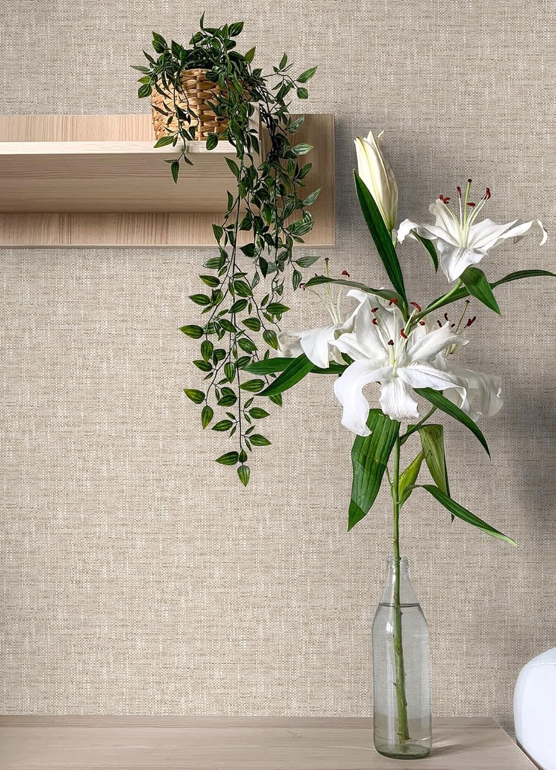 - Taupe wallpaper texture: The subtle poplin pattern brings warmth and sophistication that complements modern or classic décor.