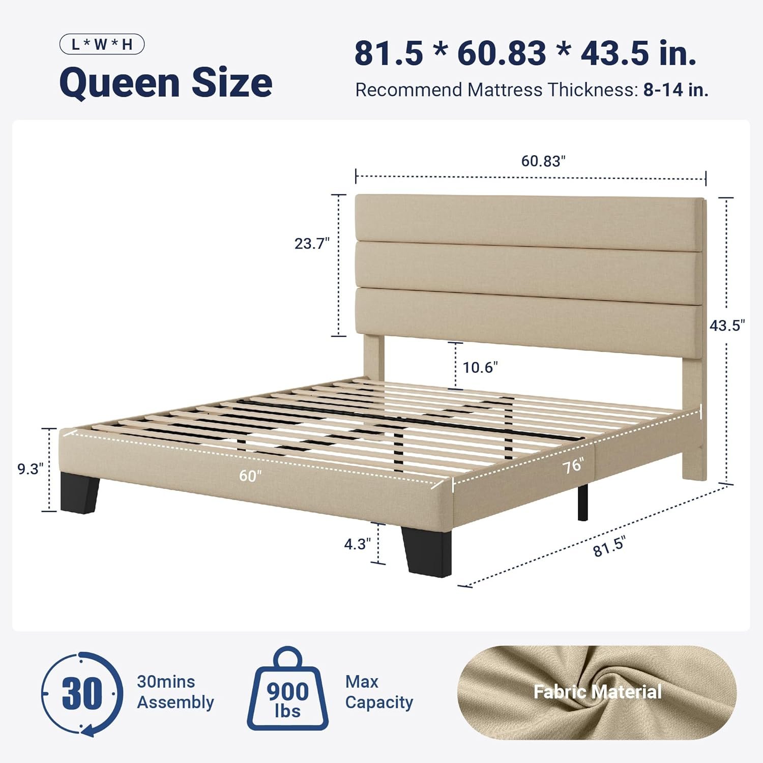 Upgrade your bedroom with the Allewie Queen Size Platform Bed Frame, featuring a stylish fabric upholstered headboard and sturdy metal-wood construction that supports up to 800 pounds. This minimalist, noise-free bed frame requires no box spring and assembles easily in under an hour, making it perfect for any décor and mattress type. Packed efficiently in one box with all parts clearly labeled, it’s a reliable and elegant choice for a restful night’s sleep.